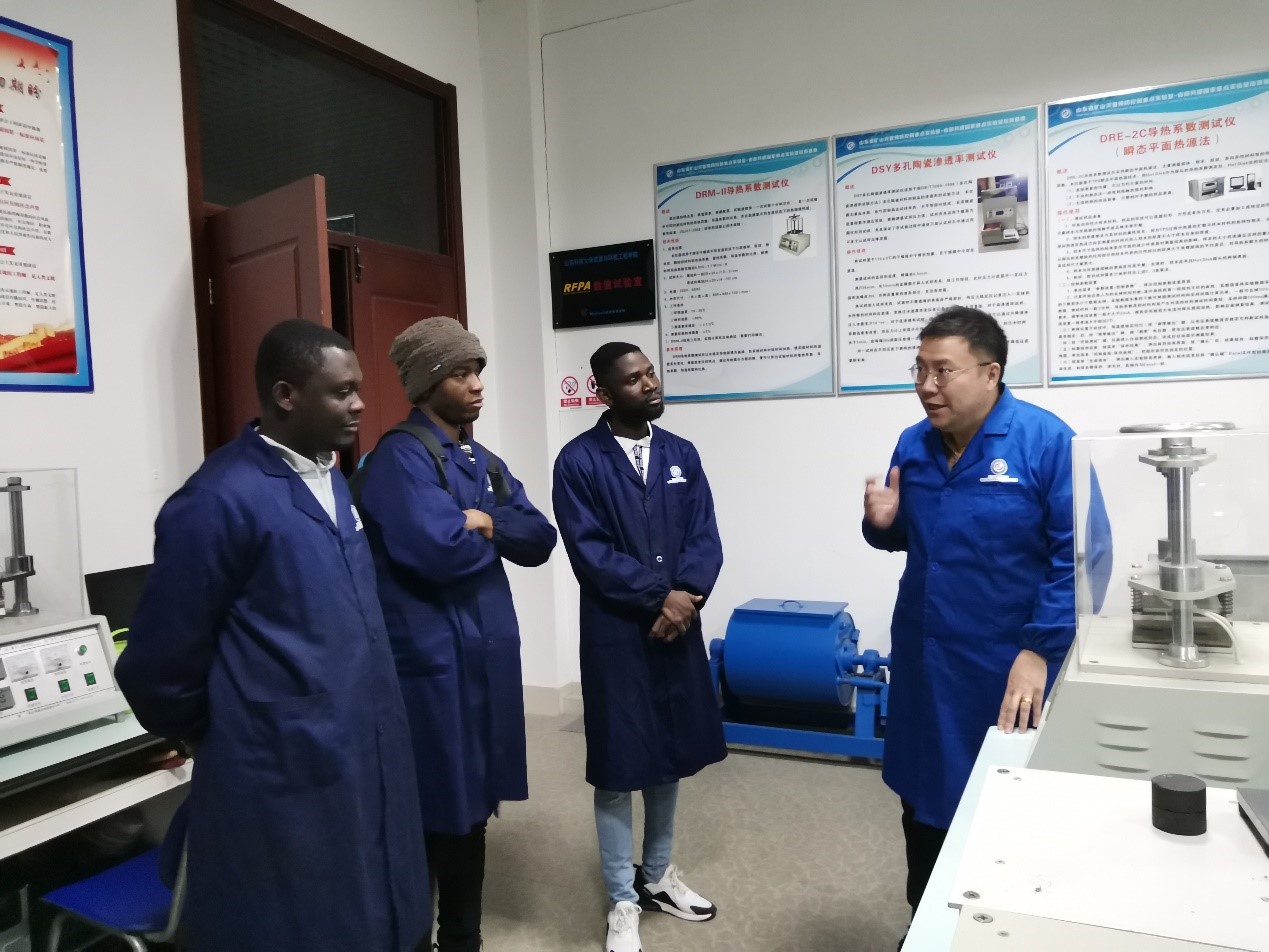 应外国留学生的请求,聂文副院长、刘震主任、孟祥豹主任及杨文宇老师带领留学生们参观了实验室,向留学生重点讲解了相关实验仪器设备。留学生们对学院安全与环境领域研究方向和仪器设备表现出浓厚的兴趣,就自己的疑虑与老师们展开了热烈的交流。