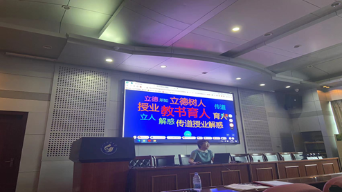 于海明老师通过分享对课堂教学的感悟和思考,鼓励青年教师在教学实践中学会发现问题并主动探索、解决课堂中遇到的瓶颈,提高个人教育教学能力。他通过对BOPPPS教学模式的介绍及现场教学示范,解读如何打造以学生为中心的高效课堂并详细介绍了青年教师教学比赛的流程及信息化手段在教学环节中的应用,鼓励青年教师厚积薄发,追求永无止境的教学艺术。