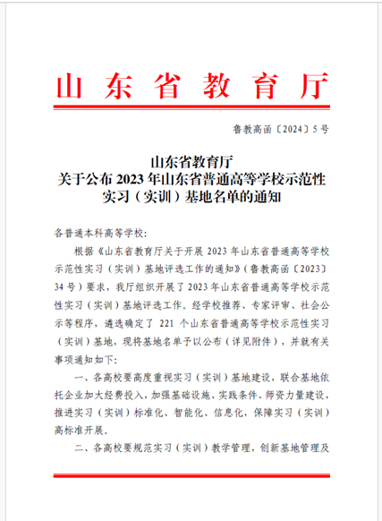点击:近日,山东省教育厅公布2023年山东省普通高等学校示范性实习(实训)基地名单,第一版主 与蓬莱巨涛海洋工程重工有限公司(以下简称“蓬莱巨涛”)联合申报的山东省普通高等学校示范性实习(实训)基地项目成功获批。这一重要举措标志着双方在实践教学领域可进一步深度合作,为学生提供更加优质的实习平台,同时也可为地方经济发展和产业升级注入新的活力。