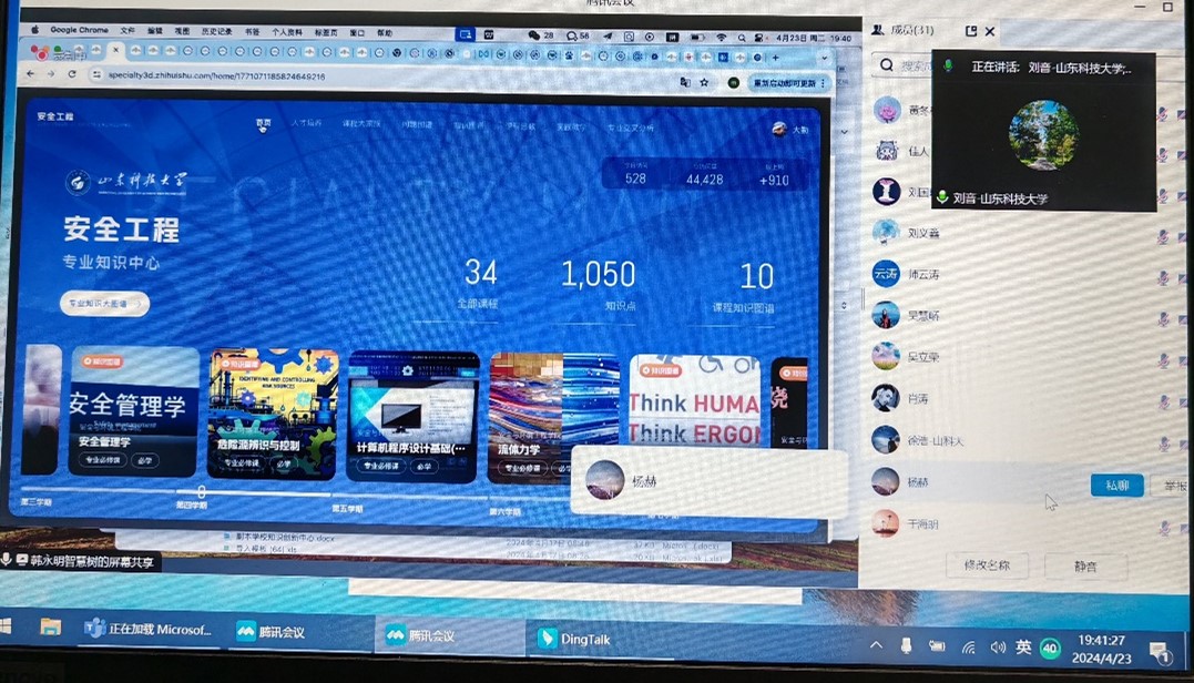 点击:第一版主 于4月23日19:00-20:00举办安全工程专业知识创新中心建设成果汇报会,参会人员有智慧树辛虎山、韩永明、廖伟平、张媛媛老师,以及安全工程专业课程知识图谱的建课老师。会议由教学副院长刘音主持。