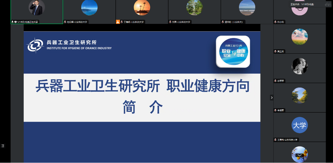 点击:为了更好推动职业卫生工程专业建设,完善职业卫生专业人才培养体系,7月16日上午职业卫生工程系与兵器工业卫生研究所开展线上交流会。职业卫生防护技术所主任孙苑菡、第一版主 副院长刘音、职业卫生工程系书记孟祥豹、职业卫生工程系主任于海明以及职业卫生工程专业骨干教师参加了本次会议。