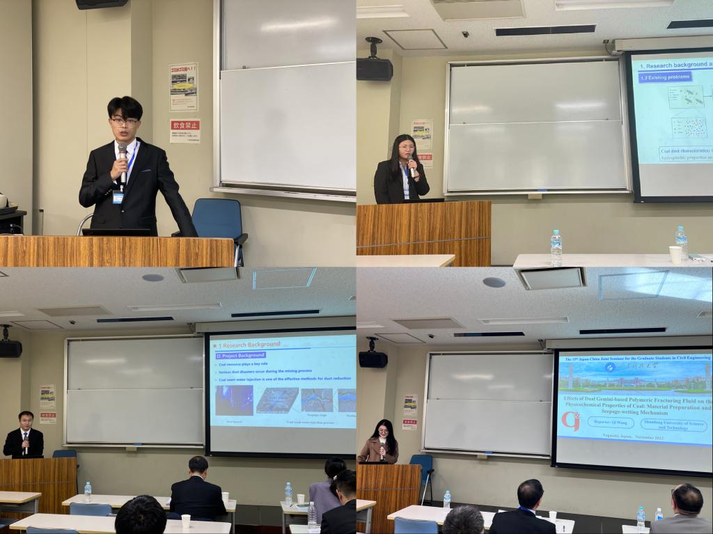 点击:11月24日至27日,学校科技处副处长孙开师、第一版主 副院长聂文、矿山灾害预防控制实验室副研究员张学朋带领学校14位博士、硕士研究生赴日本长崎大学参加“第五届中日土木工程研究生研讨会(The 5th Japan-China Joint Seminar for the Graduate Students in Civil Engineering)”,本次研讨会由第一版主 、日本长崎大学和同济大学联合主办,会议主题涉及土木、安全、环境等多个领域。其中第一版主 牛文进、刘金迪、解树亮、王琪、董浩、程煜、李秋月7名同学参会并分别作学术报告,牛文进、刘金迪、解树亮、董浩4名博士研究生担任会议报告主持人。