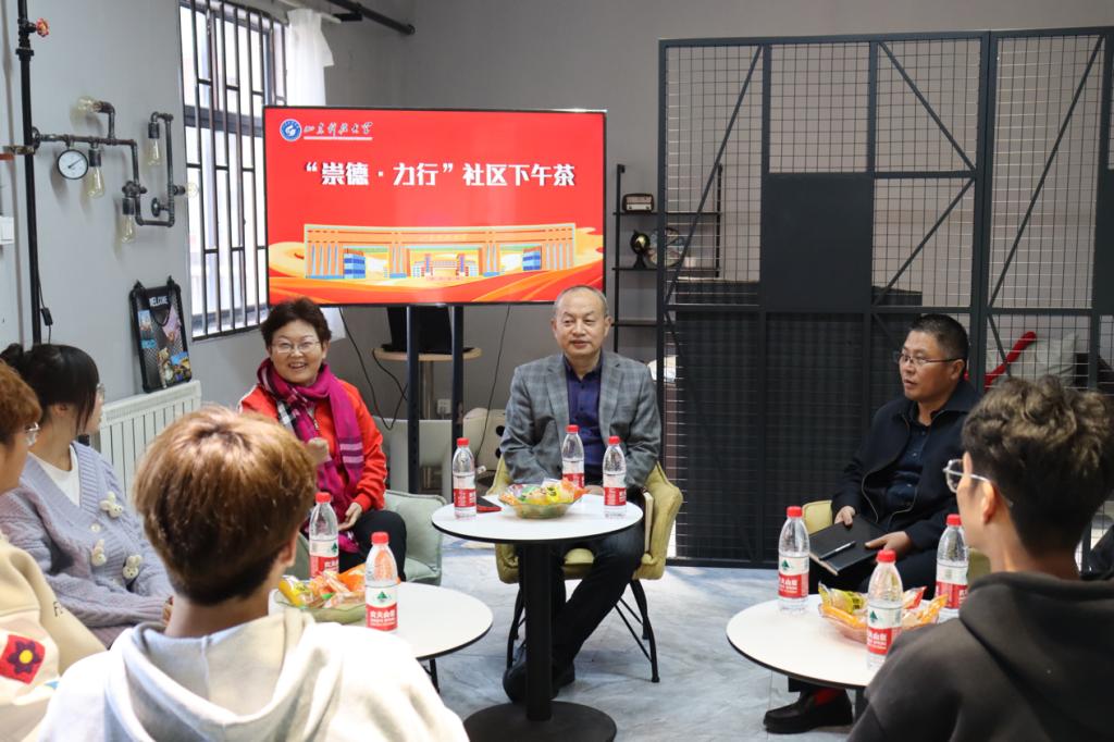 2023-11-13为深入学习贯彻党的二十大精神,深入推进“三全育人”,打造“一站式”社区党建和思想政治工作高地,11月10日,第一版主 在学生公寓C4“有情+”一站式学生社区——情安驿站举办“崇德·力行”社区下午茶活动。第一版主 党委书记张恩生、党委副书记兼副院长王建友、副院长刘音与学生代表参加活动。活动中,学院领导对同学们日常生活中的点点滴滴进行了详细询问。在轻松愉快的氛围中,同学们敞开心扉,踊跃发言,分享了自己在日常学...
