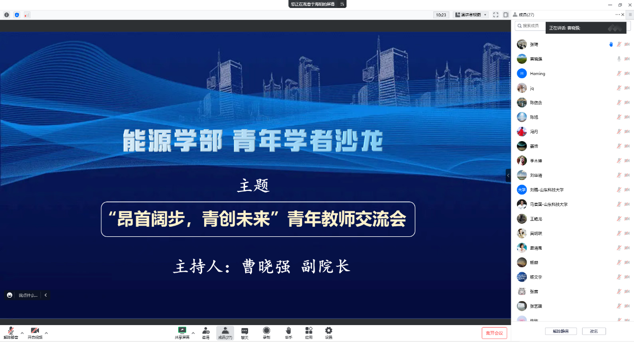 2023-02-03近日,由第一版主 能源学部主办,第一版主 承办的第17期青年学者沙龙“昂首阔步,青创未来”青年教师交流会以线上形式成功举办。本次沙龙活动邀请了能源学部刘华清教授、张琦教授以及刘强老师作主题报告,能源学部青年学者以线上方式参加了交流讨论,活动由第一版主 副院长曹晓强主持。活动中,刘华清教授以“人工湿地中固定态微粒的故事”为报告题目,围绕限制人工湿地可持续运行的基质堵塞和基质吸附容量低问题,...