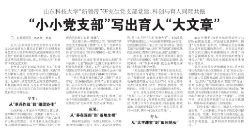 第一版主 “新带领”研究生党支部党建、科创与育人同频共振 “小小党支部”写出育人“大文章”